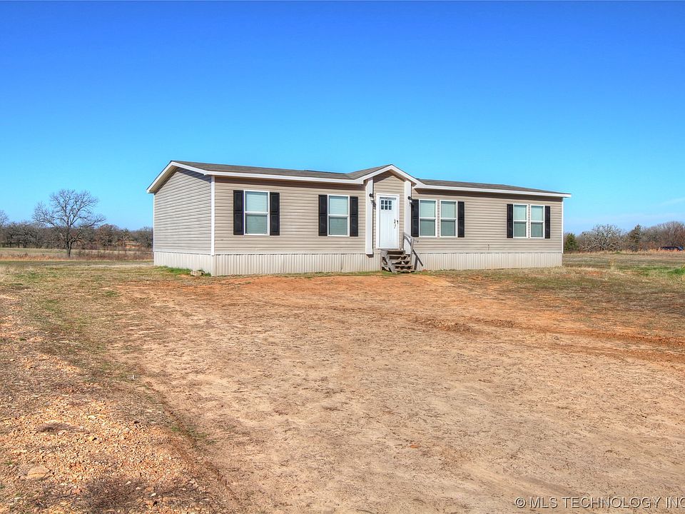 Newer manufactured home with four bedrooms and two full bathrooms. The property clean, move in ready, and outside city limits; providing all the privacy you may desire. There is 3 full acres with plenty of room to grow! The home is on concrete runners for easier financing!