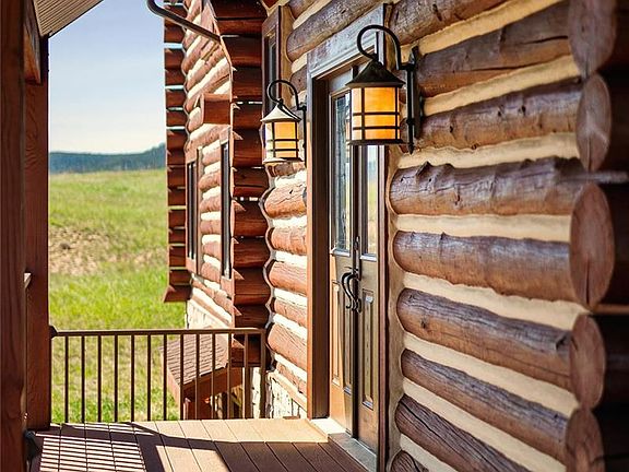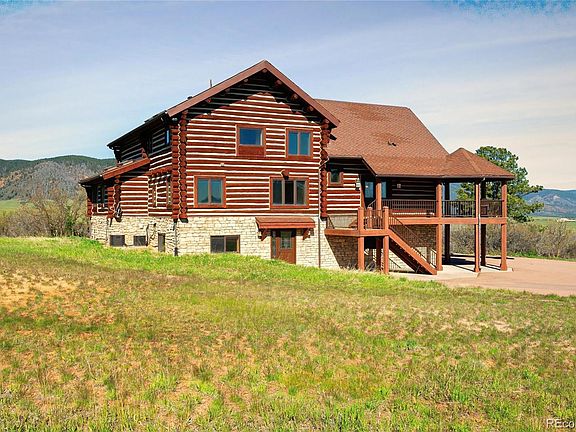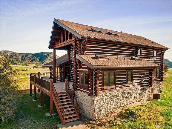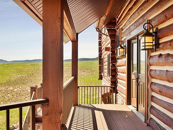 Welcome to your private sanctuary at 11067 Spruce Mountain Road! This stunning custom-built log home is situated on 35 acres of pristine ranch grasslands, offering expansive, uninterrupted views of the surrounding landscape. Designed to blend seamlessly with nature, this one-of-a-kind home provides rustic charm paired with modern comforts. The spacious, open floor plan invites natural light through large windows, framing the breathtaking scenery from every room.