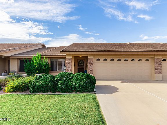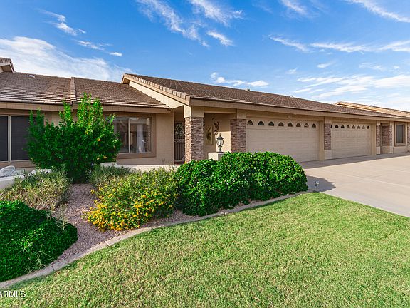 A great opportunity to own in the premier 55+ Community of Sunland Springs Village. This 2 bed 2 bath golf lot patio home works great for a lock and leave owner or full time resident. Furnishings available so this is a great turn key property. Enjoy the modern updates, large great room, split floor plan, private covered patio with views of the course and mountains. Have peace of mind with a new roof, newer AC and newer water heater. The owner's suite features walk in tiled shower, dual sinks and walk in closet. The neutral tile is throughout for easy mobility. HOA covers roof, exterior maintenance, water, sewer and trash. Sunland Springs offers community pools/spas, pickleball, bocce, billiards, ceramics, clubhouse, loads of activities and clubs. Gorgeous home and a must see!