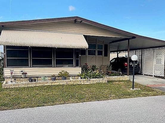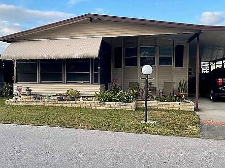 Come and see this newly listed 1250 sq ft Palm Harbor located in The Grove in Bradenton FL. The Grove is an upscale, pet-friendly manufactured housing community for active residents 55 and over. The beautiful gated grounds feature 200+ lots of double wide homes situated on 40 lush acres of former orange groves. This is an unfurnished 2 BR 2 BA home. It has a bright and sunny kitchen with "wood" laminate flooring, tons of cabinet space and a cute breakfast area. Open concept to the kitchen is a dining area with a large cabinet and pantry for extra storage. The living room is carpeted and has an overhead ceiling fan, double windows for extra light and plenty of room for a sectional couch. The master bedroom has an en-suite bath with room for a king-sized bed and a nice walk-in closet. The guest room also has an overhead ceiling fan, closet and another bath nearby. There is another room that is currently being used as a laundry room/office space. Use your imagination and make this into anything you want! The two car (tandem) car port has an enclosed shed to hold all your garden tools and beach toys. The enclosed porch has enough room to accommodate a couch for relaxation and a table for evening meals. Lot rent is $907.99 and includes cable, lawn, water, sewer and trash. All listing information is deemed reliable but not guaranteed and should be independently verified through personal inspection by appropriate professionals. Integrity Mobile Home Sales cannot guarantee or warrant the accuracy of this information, measurements or condition of any property. Measurements are approximate. Lot rent subject to change.