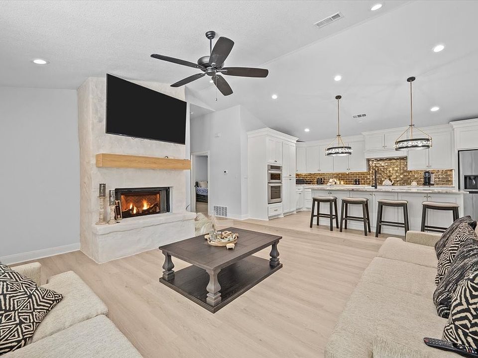 Welcome to this recently updated 3-bedroom, 2-bath home nestled on 3 fully fenced acres — a perfect blend of rustic charm and modern luxury!Step into the heart of the home: a stunning custom kitchen with marble countertops, an oversized kitchen island, stainless steel LG appliances, and beautiful chandeliers that flow throughout the home. The primary suite is your personal retreat, featuring a walk-in shower with dual showerheads and its own elegant chandelier — a spa-like space to start and end your day.