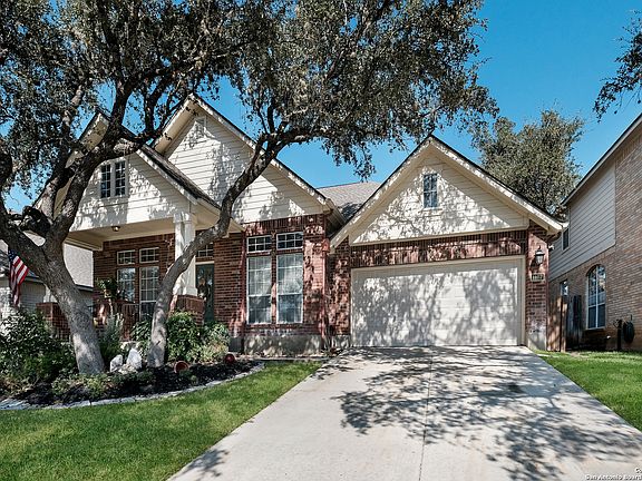 Welcome to this meticulously maintained home tucked away in a quiet cul de sac within a gated community in the heart of Stone Oak. Inside, you'll find a completely carpet free interior and a fresh kitchen with new appliances (2023) including a gas stove, dishwasher, microwave, and refrigerator that will stay. A block carbon water filter has been added under the sink, and a water softener serves the entire home for better water quality. The primary suite features an oversized walk in shower, while the garage offers built in shelving for extra storage. Step outside to your private oasis surrounded by mature oak trees. The backyard has been thoughtfully improved with a new deck, a canopy that will convey and is perfect for relaxing or entertaining. Leaf guard gutters by LeafFilter and a full sprinkler system in the front and back keep maintenance simple. This move in ready home blends comfort, convenience, and peace of mind in one of the community's most desirable locations in Stone Oak.