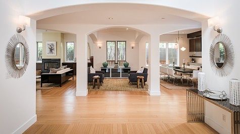 UBER LIGHT, SPACIOUS CALIFORNIA CONTEMPORY. This amazing 3 story home defines the indoor/outdoor lifestyle. The main level boasts a formal living room that leads out to a side yard. The other side of the first level is a kitchen family room and breakfast area leading to another outdoor area. And, additionally there is a bedroom suite, formal dining room and library/office and powder room. The upper level has five generous bedrooms, three of which are en-suite. The lower level can be customized for your needs. Currently, there is a media area, spa room, office/bedroom, craft area and bathroom. And, above the garage there is a suite with bath. This house is one of kind for the fabulous pedestrian friendly North of Montana neighborhood.
