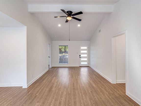 Discover your modern North Austin home, offering spacious living and sophisticated upgrades. Step inside to an open and airy living and dining area, featuring a vaulted ceiling, recessed lighting, and durable plank flooring that extends throughout the main living spaces. The kitchen is a true highlight, boasting white shaker cabinetry, quartz-style countertops, subway tile backsplash, black hardware, a generous prep island, and stainless-steel appliances, including a gas range and chimney hood. Natural light floods the home through large picture windows and a sliding door that seamlessly connects to a spacious concrete patio, ideal for grilling and outdoor entertainment. The private, level backyard is shaded by mature trees and offers ample space for a playscape, raised garden beds, a future studio shed or ADU. You can rest assured knowing that significant upgrades were completed in August 2025, including professional foundation repair, Hardie Plank siding, an HVAC system, flooring in your living areas, and a full interior and exterior paint. Bedroom #1 has been enhanced with a new closet and an additional exterior window for improved functionality and natural light. Your bathrooms feature clean tilework, modern fixtures, and a rainfall shower head for a spa-like experience. The location is truly desirable, nestled within the Jamestown/North Austin area with convenient access to major corridors for quick commutes. You are just minutes away from daily essentials, and a diverse selection of shopping and dining options. There's also easy access to transit that connects to UT, downtown, and the broader Metro system. This polished one-story home offers style, comfort, and peace of mind, whether you're looking for a new residence or an investment opportunity. Contact your favorite Realtor to tour and submit your bid today to become the owner. If you don't have an agent, one of our team members would be happy to help you make this home yours.