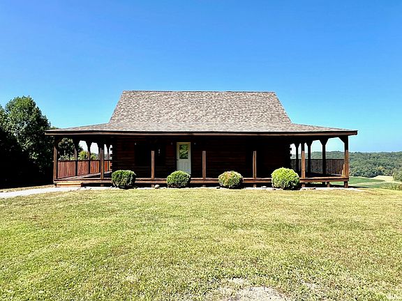 One of the most picturesque views you’ll find, this beautifully crafted cabin on 3.28 acres blends timeless design with modern comfort. Offering 2,474 total square feet (1,546 finished and 918 unfinished) the home features 4 bedrooms and 2 baths. A full wraparound porch encircles the entire home, offering peaceful views from all four sides and the perfect spot to enjoy the surrounding natural beauty. Inside, the main level boasts an open floor plan with vaulted ceilings, abundant natural light, new flooring, two bedrooms, and a full bath. Upstairs includes a loft overlooking the living area, a third bedroom, and a second bath. The partially finished basement adds a fourth bedroom and a versatile open space with stamped concrete walls, perfect for a rec room or additional living area. Home features a 24X24 2 car detached garage with a lean-to. Recent updates include a new AC unit in 2024 and a roof less than a year old. This home is ideal as a full-time residence, weekend retreat, or investment located just 25 minutes from both Bedford and Brownstown.