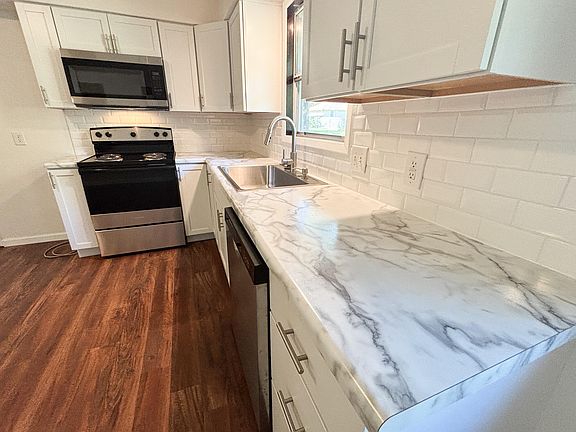 Spacious backyardAttached one-car garageCovered side carportOpen layoutRedesigned kitchenBrand-new flooringCorner lot