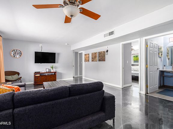 Beautifully maintained 3-bedroom, 2-bath home in an unbeatable Tempe location near Scottsdale Rd & McKellips. Perfect for owner-occupants or as a furnished rental investment. Open-concept layout with a spacious kitchen, dining for 8 plus bar seating, and comfortable living spaces. The backyard is an entertainer's dream — pebble-tech play pool, 3-4 person hot tub (2023 install), natural gas BBQ, fire pit, and low-maintenance landscaping. Primary suite with king bed, two guest rooms with queens. Two-car garage, full laundry, and keyless entry. Minutes from ASU, Old Town Scottsdale, and Sky Harbor Airport.