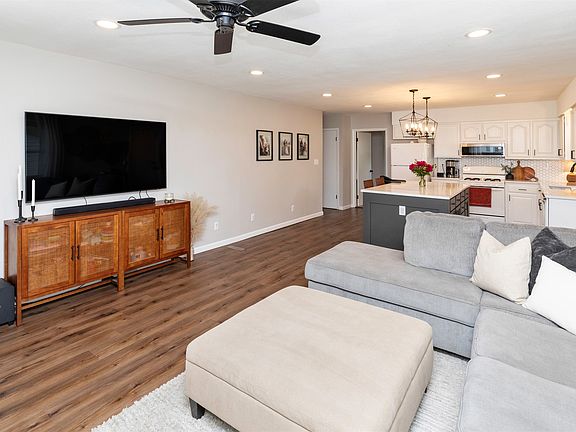 This home lives bigger than it looks!  Start with a convenient drop zone inside the front door. Now, step into a fully updated main level living area!  With glorious sunshine streaming in the large South & East facing windows, this space is bright and inviting.  The open concept living, dining & kitchen have been fully updated with LVP flooring, fresh paint & new light fixtures.  The kitchen sports new quartz countertops, appliances and a large island!  This is a great space for cooking, entertaining or just relaxing at home!  OH … there is a door off the kitchen with access to the side yard and patio!  Down the hall you will find a large primary bedroom and two additional, generously sized bedrooms.  A beautiful, updated full bathroom completes this level!  The lower level will not disappoint!  On one side you will find the laundry room & plenty of storage space.  The other side offers a finished area that can be whatever you want it to be.  BONUS ... an amazing 3-season, fully enclosed porch off the back of the house!  Spend lazy, rainy days/evenings relaxing in this private little hideaway.  Otherwise, head out the back door to the patio in your fully fenced back yard! There is a beautiful, fenced in garden and a shed as well!  It is all here!  Call today for your private showing!