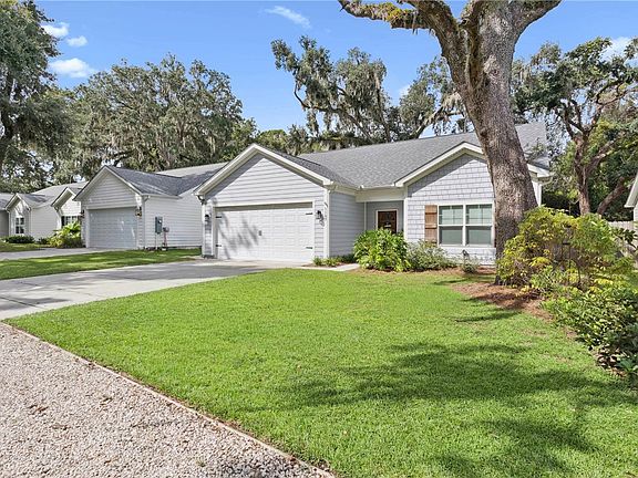 This charming 3BR/2BA cottage offers the ease of one-level living in a prime location close to FLETC, local shopping, dining, and the Brunswick Country Club. The beaches of St. Simons Island are just a 20-minute drive away. Built in 2021, the home features an open-concept design with 9-foot ceilings and luxury vinyl plank flooring throughout. The stylish kitchen is the heart of the home, boasting quartz countertops, stainless steel appliances, a separate pantry and a large center island perfect for gathering. The electric fireplace invites you into the living room, creating the perfect space to cozy up, relax or entertain. The primary suite includes a spacious walk-in closet and a spa-like bath with double vanities and a generous tiled shower. Enjoy outdoor living in the large, fully fenced backyard with a patio ideal for entertaining. A two-car garage completes this well-maintained home, combining modern comfort with everyday convenience.