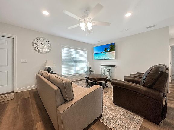 COZY 3BR/2BA ONE LEVEL RANCH WITH PRIVATE POOL ONLY MINUTES TO BAY ACCESS & DOWNTOWN PORT ST JOE! Situated on over a 1/2 Acre, this endearing home has been renovated with all new LVP flooring, shiplap accent walls and painted brick fireplace. Open to the living area is an eat-in kitchen upgraded with a stainless steel gas range, convection microwave and quartz counters. Modern light fixtures and breakfast bar seating complete the design. Enjoy a nicely appointed primary suite with porcelain tile floor, double vanity and glass door shower. All on one level are two guest rooms each with adequate closet space and a shared hall bath. Step onto the outdoor party deck surrounded by mature shade trees creating a natural old Florida landscape. Covered padded parking is an added bonus along with an oversized backyard large enough for boat & RV storage. Near the town center, golf cart transportation is all you need to visit area restaurants, shopping & entertainment. Teeming with wildlife, this area of the Forgotten Coast is a favorite destination for fishing and boating activities along with a beautiful bayfront park and community boat launch. No HOA dues or restrictions apply & no flood insurance is required in the X Flood Zone. Take the 3D tour & call for a showing today!