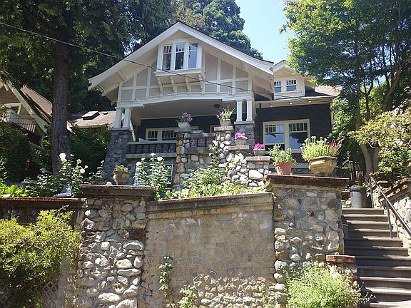Wonderfully updated preserving Craftsman details. Front porch overlooking Madrona Park, Lake Washington, and views across the lake to Bellevue's skyline and the Cascade Mountains. Across the street from path through a natural park that is a piece of wilderness in the city. Enclosed back yard with a Thai style "Spirit House" and garden. Daylight basement with two bedrooms, kitchen, full bath, and large living room with gas river rock fireplace.