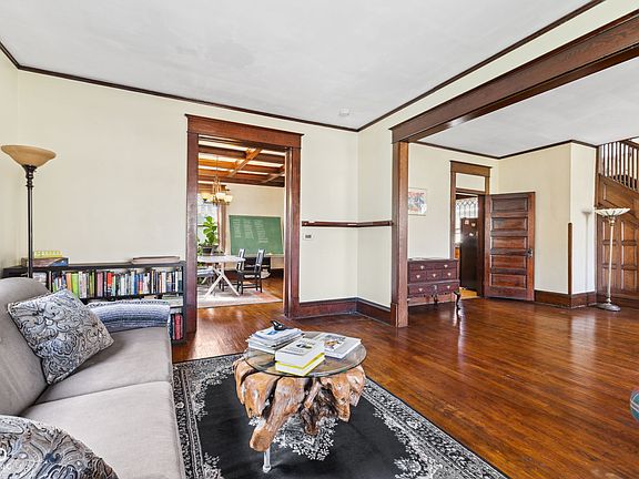 Step into a storybook of character, charm, and timeless craftsmanship-this 1920-built beauty is a home with unmistakable charm, built to last and crafted with care. Perched behind a classic front porch made for morning coffee and evening chats, this 4-bedroom, 1.5-bath home welcomes you into an expansive foyer where original woodwork, hardwood floors, and high ceilings immediately capture your heart. The layout flows beautifully from the spacious living room to the dining room, where a wood coffered ceiling and built-in cabinet elevate every gathering. The walk-in pantry, ample countertop space, and screened-in back porch just off the kitchen make daily life at home both functional and enjoyable. Upstairs, four spacious bedrooms with hardwood floors offer room for everyone-plus the finished basement for movie nights, play space, or a home office. Outside, a fenced yard and 2-car garage provide both security and storage, all with no HOA to limit your lifestyle. Tucked minutes from Columbian Park Zoo, Loeb Stadium, South Tipp Park, Tippecanoe County Fairgrounds, Lafayette Country Club and more, this location delivers both convenience and community. It's rare to find this kind of character, space, and location at this price-schedule your private showing today before someone else calls it home!