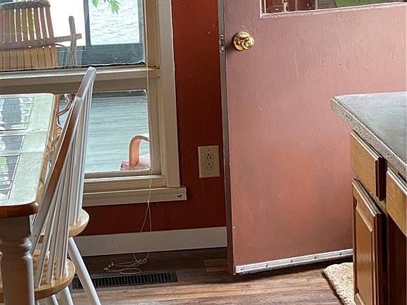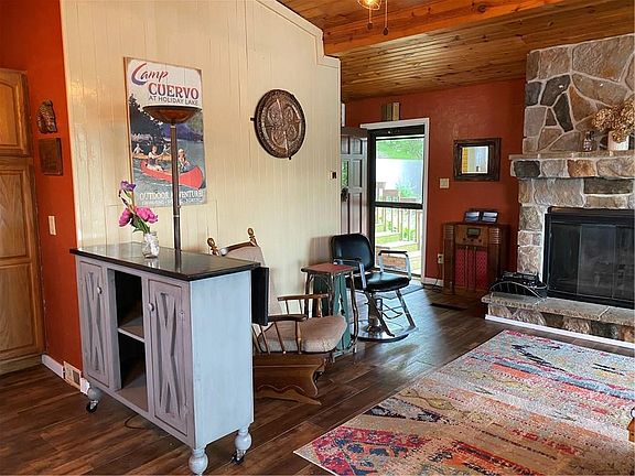 Welcome to a Lakefront Cabin with a view!!!! This roomy cabin is both rustic and cozy, hosting several updates. Such as Flooring and concrete counter tops. Main level bonus is the 4 season porch, a full view of the Main Lake. You can see all of the activity that is going on Winter or Summer. Open concept main floor with a great fireplace to keep you all warm and toasty. All bedrooms located up a short stair way, as well as the newly updated full bathroom. One of the bedroom is dual purpose with the well thought out Murphy bed to use when needed, or just a place for your guests to chill. Owner have been working on landscaping and all of the beautiful perennials to add beauty and less maintenance. Has new retaining walls and newer patio Lakeside. Sit around the fire pit and enjoy the fireworks with all your Family and Friends.