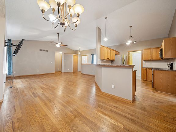 Welcome to 1107 N Aksarben, a beautiful home in west Wichita's Copper Gate Estates. Located in the Maize school district this ranch-style property has 5 bedrooms and 3 bathrooms, offering ample space for you and your family. Upon entering the home, you will be greeted by an inviting floor plan with vaulted ceilings and hardwood floors. The hardwood floors extend into the well-appointed kitchen that features stainless steel appliances and an eating bar. For added convenience, the main floor boasts a dedicated laundry room. The primary bedroom is a serene retreat, complete with a vaulted ceiling and an en suite bathroom that features double sinks, and a separate shower and jetted bathtub. In the basement you will discover a versatile recreation room, perfect for family gatherings. You'll also find a well-appointed bathroom and two additional bedrooms, one boasting a walk-in closet. Need storage? No problem! The basement offers plenty of room for all your storage needs. Enjoy a large, fenced backyard with plenty of privacy and security for outdoor activities. Relax or entertain on the two patio areas. The sellers recently added an irrigation well and sprinkler system providing easy lawn maintenance. The oversized 3-car garage offers plenty of space for vehicles and storage. Enjoy peace of mind knowing the roof, water heater, furnace and air conditioner have all been replaced in the last 2-3 years. Don't miss a chance to make this property your new home. Schedule your showing today!