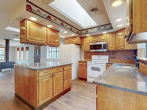 Off-street parkingFree-standing wood fireplaceWrap around wooden deckOpen main living space