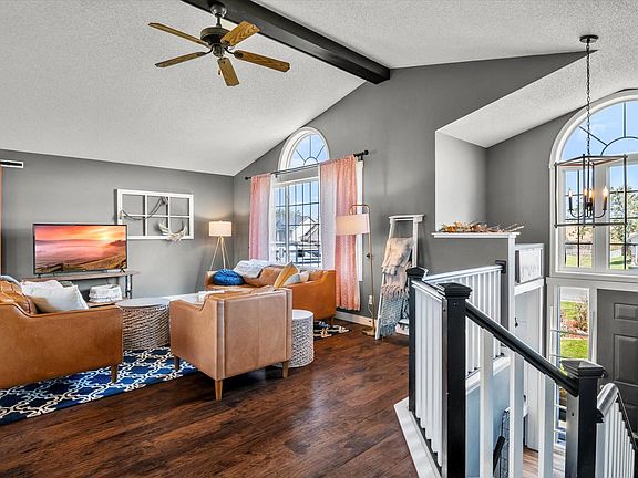 A beautiful 4 bed 3 bath home is now available in the sought after Rolling Meadows neighborhood in Roberts! The charm and character throughout the home does not go unnoticed. The main floor offers a bright and open concept with vaulted ceilings, large windows, and huge center island. The kitchen and living room features plank flooring, modern fixtures, stainless appliances, white tile backsplash and MORE. The oversized deck is the perfect spot for outdoor living with an attached pergola and sight over the fenced in backyard. Head down the hall to find your primary bedroom with a private full bath and walk in closet. Find a full guest bath and 2nd bedroom just across the hall. The walkout lower level is the perfect family room, enough space for movie night and a spot to play/workout! 2 more bedrooms and a bath wrap up the lower level. This home will instantly win you over, don’t wait to see it!
