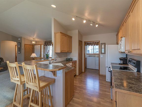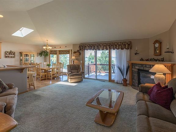 Move in ready rancher! The welcoming Great Room features vaulted ceilings & gas fireplace. The roomy kitchen, which has plenty of cabinets/counterspace, pantry & eating bar, is adjacent to dining room. Enjoy the view from the bay windows or dine on covered patio! Main floor master with master suite & walk in closet. Lots of space in the fully finished lower level! This quiet community is a short drive from Waterfront Beach! Oversized 2 car garage, central AC, all appliances stay. 15mil to Downtown Spokane