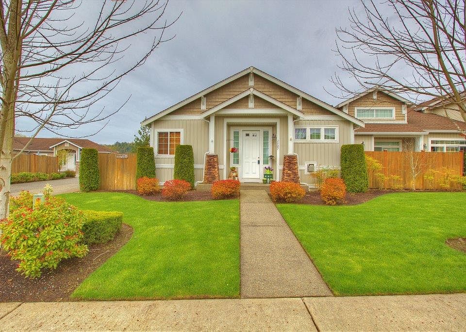 Village Green subdivision Rambler in Orting WA. 2BD 2BA great room concept with gas fireplace in the living room, open to dining area and open to kitchen. Stainless steel appliances, patio off dining area with fenced courtyard area. Master bedroom at one wing of the home and other bedroom off open living area. Separate utility room. Large two car garage with lots of storage. Gas Furnace and gas hot water system. Two patio areas all fenced. Extremely clean and well maintained home.