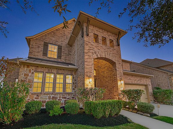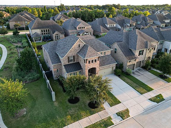 Luxury Living at it's finest! Westin "Hopkins Plan" 4 bedrms/3.5 baths on a huge corner lot in Harvest Green! Tons of upgrades after closing. Walking distance to the elementary school. Elegant brick & stone elevation with 8ft double doors, rotunda entry, curved staircase, fresh paint & 8ft doors throughout the first floor. Home office w/ French doors, formal dining w/ coffered ceiling, and family room w/ wall of windows, gas fireplace, and tile flooring. Chef’s kitchen boasts quartz countertops, island w/seating, SS built-in appliances, wine rack, study and breakfast nook. Luxurious primary suite features curved wall of windows, tray ceiling, relaxing spa bath with center soaking tub, double vanities, glass shower, and upgrade custom walk-in closet connected to laundry. Upstairs offers game room, media room with surround sound, and 3 spacious bedrooms with walk-in closets and 2 upgraded full bathrooms. Make it yours today!