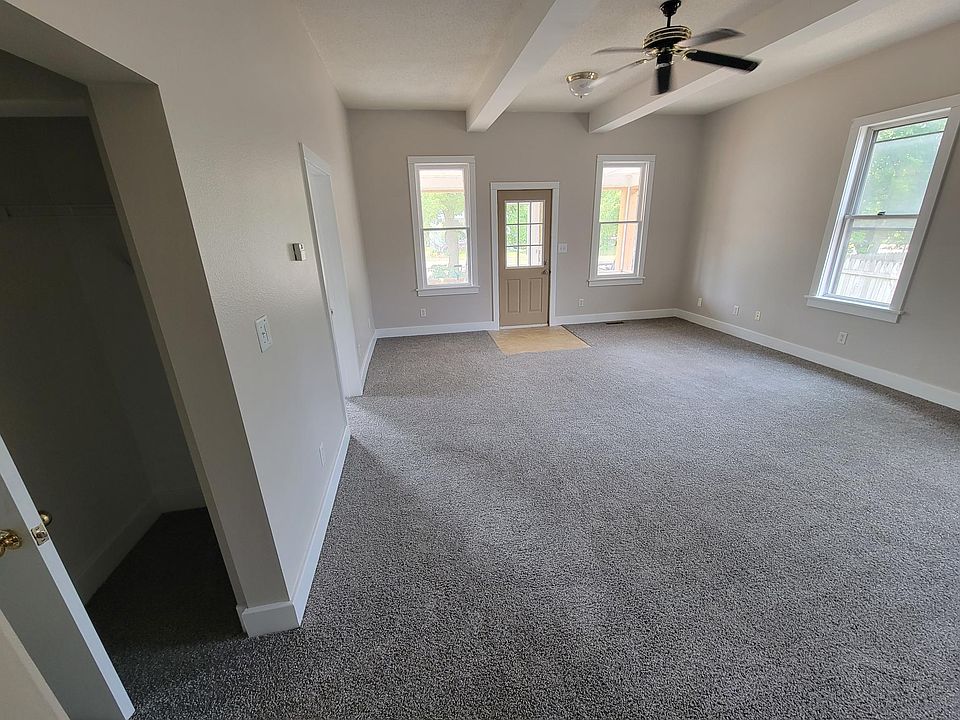 New paint and carpet throughout, this large 4-5 bedroom / 2 bath home has 10 ft ceilings on the main floor. There's a main-floor laundry room that could instead be used as a 5th bedroom if desired. There's also a full unfinished basement. The primary bedroom has a bonus room attached that is large enough for an office, nursery, or HUGE walk-in closet.