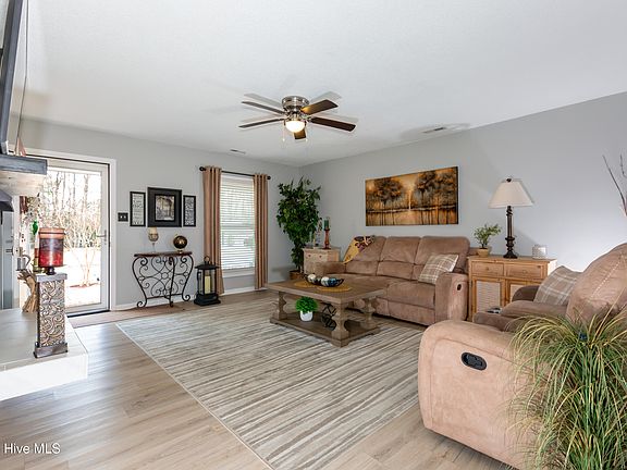 Welcome to this beautifully renovated brick ranch, meticulously maintained and ready for its new owner! The home boasts a welcoming rocking chair front porch, perfect for relaxing and enjoying the outdoors. Step inside to discover a spacious living area with low-maintenance LVP and tile flooring throughout, offering both style and durability. The cozy living room features a gas fireplace, ideal for creating a warm and inviting atmosphere. The generously sized kitchen offers abundant counter space, complemented by a stylish subway tile backsplash, making it the perfect space for cooking and entertaining. Off the kitchen, you'll find the laundry room, offering extra storage and providing easy access to the garage. The primary bathroom is a true retreat, featuring a subway-tiled walk-in shower. With the HVAC, roof, and windows all just 5 years old, you'll enjoy both comfort and peace of mind knowing these major updates are already taken care of. Outside, you'll find a large fenced-in backyard, complete with a shed for additional storage. Whether you're hosting a gathering or simply enjoying some quiet time, this outdoor space has everything you need. The home's location is incredibly convenient, just moments from CarolinaEast Medical Center, grocery stores, and shopping, making everyday errands a breeze. As an added bonus, the refrigerator, washer, and dryer will all remain with the home. Don't miss out on this move-in ready gem! Schedule your showing today—you won't be disappointed!