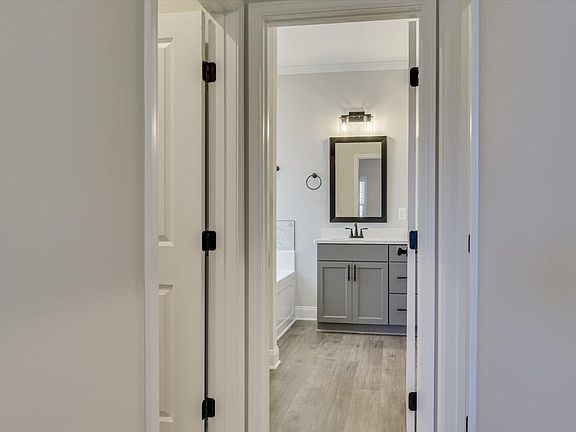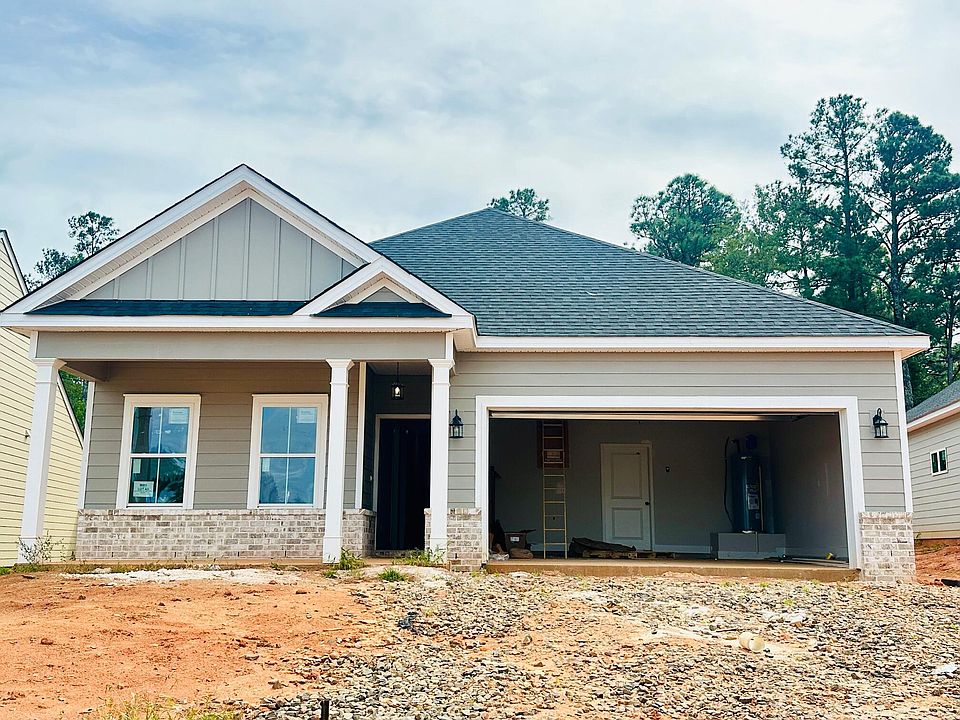 Welcome to The Bluff by South Georgia Homes, a beautifully designed single-level home offering functional living with stylish finishes throughout. Nestled on a homesite that backs up to green space, this 3-bedroom, 2-bath home delivers comfort, convenience, and charm in every detail. Step inside to find durable LVP flooring flowing through the foyer, living room, kitchen, and dining area. The open-concept living room is filled with natural light and connects to a gourmet kitchen featuring granite countertops, a trendy backsplash, stainless steel appliances, and luxury lighting fixtures. Perfect for both entertaining and everyday living. The spacious owner's suite is a true retreat, complete with a spa-inspired ensuite bath featuring his and her vanities, a soaking tub, and a separate walk-in shower. Two additional bedrooms share a full hall bath, ideal for guests or family. Enjoy peaceful mornings or relaxing evenings on the covered front and back porches, overlooking a meticulously landscaped yard with a full irrigation system for easy maintenance. Located in The Sanctuary, a thoughtfully planned community offering a community garden, walking trail, playground, sidewalks, and street lighting, you'll enjoy both comfort and connection. Conveniently situated near shopping, dining, multiple parks, medical facilities, and SRS, this home offers the lifestyle you've been looking for. Don't miss your chance to own this brand-new gem—schedule your private tour today!