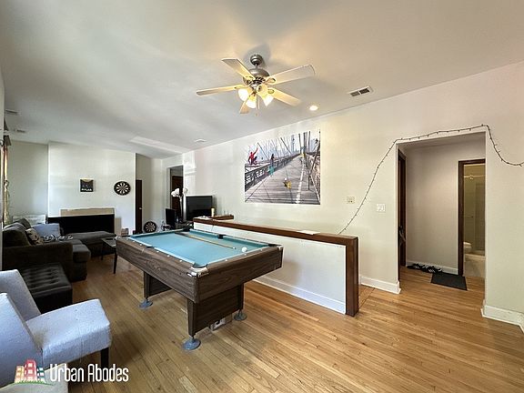 Memorable four bedroom, three bathroom duplex in Lakeview walkup features rehabbed kitchen with dishwasher, large combination living and dining rooms, spacious bedrooms, great closet space, hardwood floors, rehabbed bathrooms, central heat and air, two decks including a rooftop deck, free laundry room in basement, and cats are welcome. Short walk to the Belmont Red Line, too!