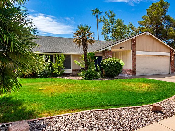 Contemporary single-story home with open layout, tile & laminate flooring, and a cozy nook in the living room and kitchen. Entertain easily with a built-in wet bar and connected living spaces. Features 3 bedrooms, including a primary suite with smart toilet, smart mirror, and backyard access. Enjoy a saltwater pool and spacious yard for outdoor fun. Smart touches throughout, including motion-sensor lighting in bathrooms. Walk to newly remodeled Brooks Crossing Park with pickleball, walking paths, and more. Local school nearby adds everyday convenience!