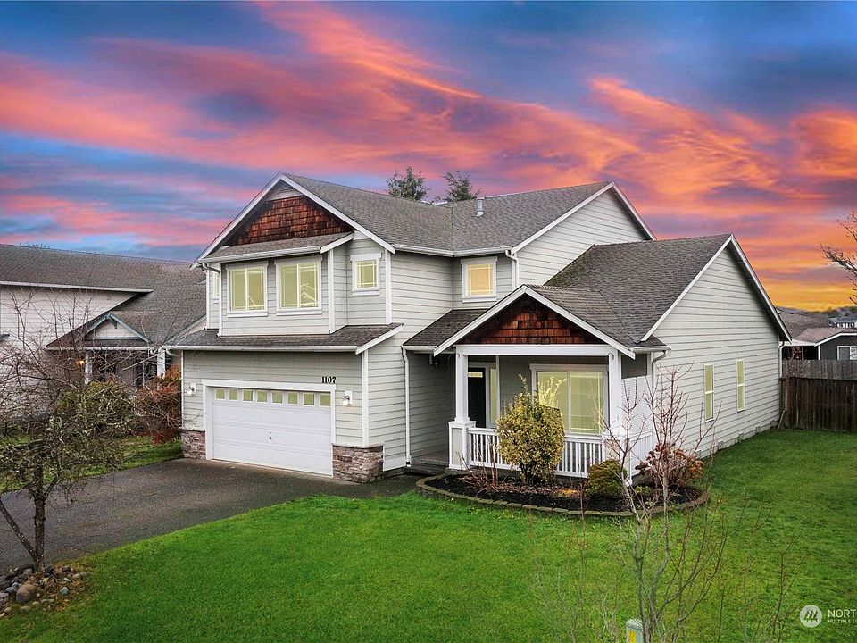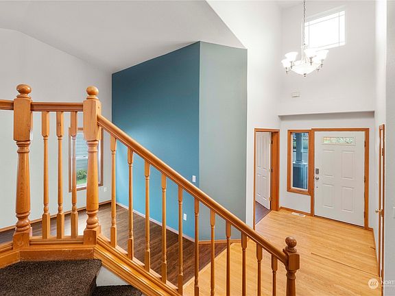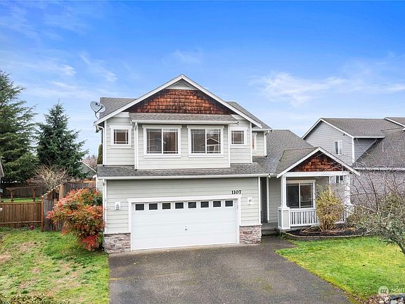 Nestled in the serene Orting valley, this delightful 4-bedroom home, complete with a dedicated office, is a dream come true. The entrance leads to soaring ceilings create an airy, open atmosphere, leading you to an elegant open spindle staircase. Picture yourself in the beautiful kitchen, boasting sleek granite countertops & fully equipped with all appliances, where every meal feels like a celebration. The kitchen's seamless connection to the living room crafts the perfect open-concept layout, ideal for lively gatherings or tranquil evenings. Step outside to discover the expansive, fully fenced backyard, a private oasis for fun, relaxation, and creating cherished memories. This home isn't just a place to live; it's a retreat.