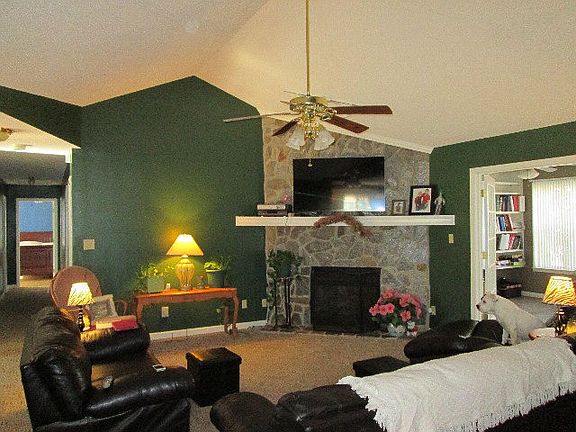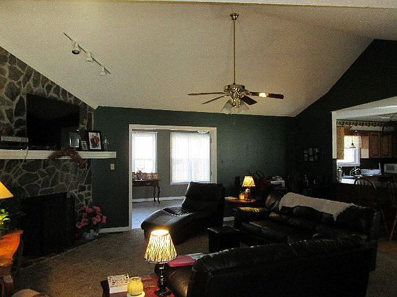 This ranch style home nestled on almost 3 acres offers an escape from the world the minute you turn into the drive. At top the hill you are welcomed by an oversize front porch perfect for rocking or swinging the worries of the day away. Once inside, the home hosts an open floor plan with formal dining, large den with rock fireplace, eat-in kitchen that features breakfast nook, bar, and ample cabinet space. You can let the sunshine in the beautiful sunroom that offers many possible uses for this space and overlooks the back yard. Down the hall you will find 3 spacious bedrooms all with walk-in-closets. The partially finished basement is perfect for man cave, workout room, media room, or storage. Outside you will find a deck that is perfect for entertaining, grilling, or sunbathing. Oops...I can't forget about the shop. This is the man of the house's dream shop. It is wired and offers storage space for all of his TOYS. Curious how to own this lovely retreat? Call today to arrange your private showing.