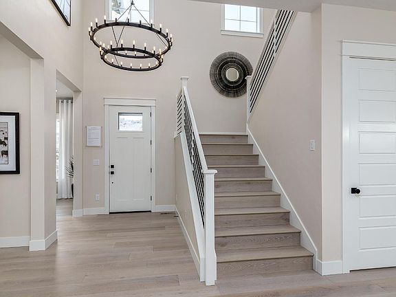 The Welstead showcases a unique collection of luxury living spaces within a desirable open-concept floor plan. An airy two-story foyer immediately opens onto a bright great room and casual dining area that overlook the large covered patio. Defined by an oversized center island with breakfast bar, the well-appointed kitchen is complete plenty of counter and cabinet space, a versatile workspace, and a walk-in pantry. Secluded on the second floor, an elegant tray ceiling highlights the beautiful primary bedroom suite that offers dual walk-in closets and a lovely primary bath with dual vanities, a large soaking tub, luxe shower with seat, and a private water closet. Secondary bedrooms, two sharing a bath with a separate dual-sink vanity area while one shares a hall bath, feature roomy closets and are central to a spacious loft. The Welsttead also offers an ample flex room off the great room, a spacious office off the foyer, conveniently located second-floor laundry, a powder room, an everyday entry, and ample additional storage.