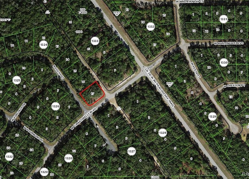Highly sought after corner Duplex lot with an alley way in the back of the lot in Citrus Springs. The boundary survey has already been completed for this multifamily land. Citrus Springs and Citrus County are booming, and this lot is a Close drive to Ocala. New construction duplexes already underway down the street!