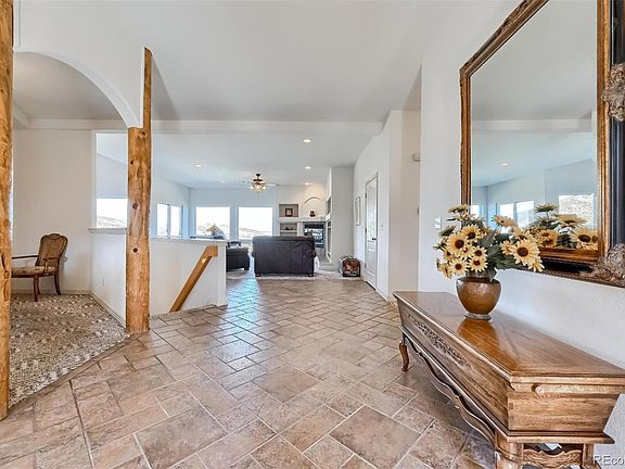 This stunning Roxborough Park ranch style home has just under 5,000 square feet. The views of the Denver skyline, foothills, Chatfield Lake, and red rocks are exceptional! Enter from the driveway through the beautiful stucco arch into a private courtyard and wraparound front porch. On the main level there are 3 bedrooms including the primary suite and a designated study. The great room is open to the large kitchen, great for entertaining. The formal dining room is separated from the great room with a half wall creating an open feeling space. The eat-in kitchen has a large walk in pantry and knotty pine cabinets. The deck off of the kitchen and great room with glass doors out from both rooms is the perfect place to take in the amazing views. Off the kitchen is the first laundry room with many cabinets and a utility sink. The study is tucked away out of the main traffic areas for a quiet workspace. The walk out level has so much to offer! Two additional ensuite bedrooms, one with a 3/4 bath and the other a full bath. There is a second powder bath for guests. The family/recreation room has an arched gas fireplace, built-in benches, cabinets and shelving, and a wet bar area with a full sized refrigerator and wine rack. The second laundry room is in a workshop/hobby/craft room on the walk out level, and there is even a room perfect for a second kitchen with the installation of some appliances! There are also two sliding glass doors with access to a private, walled backyard, rare in Roxborough Park. There is a flagstone walkway and stairs that lead around the house to the door into the walk out level, which makes this home a good multi-generational or co-housing option!