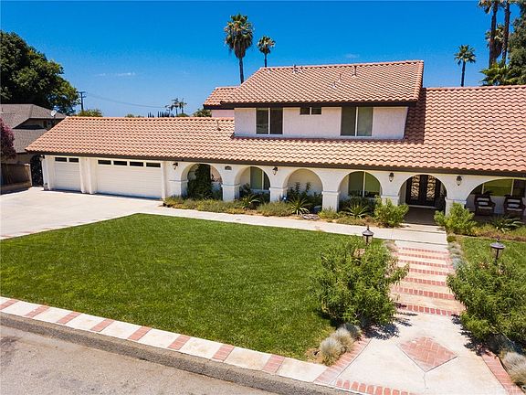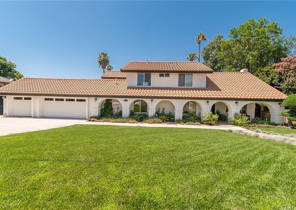 Custom Estate w/pool 5 bed + Office. Everything beautifully detailed, remodeled and renovated. 40 solar panels purchased 2019. 2 AC units. Water softener on side of home. Lot is well laid for both entertaining and Gardening. Many fruit trees. No high taxes, No HOA. City of Riverside utilities. Septic system. Roof is all tile and was certified in 2016. Commuter friendly/great neighborhood.Downstairs: Cathedral ceilings, 24" tile flooring in entry, living room extending to family room makes for bright open living. Kitchen boasts 9.5 ft island with it's own frig and sink. Professional built-in Refrigerator, Professional stove-top/oven, second oven/microwave combo, all are stainless steel and are surrounded in marble and tile finishes. Dining area has enough room for over sized family table. For those working @ home professionals, the Office is separate and overlooks the pool area. Laundry room has folding area, sink, plenty of storage cabinets and houses the home's tankless water heater. Junior suite with it's own full bathroom and french doors leading to pool. Downstairs guest bedroom has large closet and is attached to bathroom. The whole house has recessed halogen lighting, newer windows and sliders, and custom blinds. Upstairs: Master suite provides his/her closets and view, walk in shower, separate soaking tub. Two additional bedrooms are upstairs and share an additional bathroom. Backyard/Exterior: Heated pool/spa recently resurfaced and retiled. Newer Pool equipment.