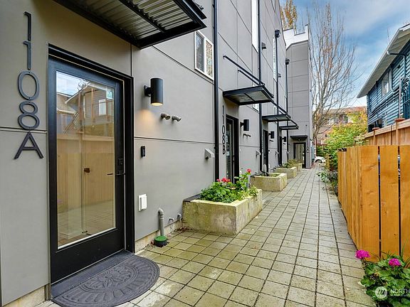 Discover this charming + private end-unit townhome in a boutique 7-home community in Madrona! Lightly lived in by its original owner, this residence boasts thoughtful upgrades: brand-new window treatments, additional storage in the office/flex room, elegant stairway crown molding + an upgraded washer/dryer. The lower level features a bright office/flex space (easily a bedroom) w/ dual entry + a convenient 1/2 bath. Upstairs, the modern kitchen w/ an island flows seamlessly into the open living/dining. The top floor offers a primary suite w/ a ¾ bath, extra closet space + access to the rooftop deck w/ peek-a-boo views of the lake + mountains. Enjoy being steps from local shops, cafes, parks + schools!