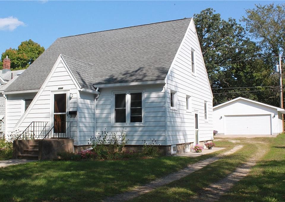Cute! This two bedroom has been very well maintained. All the charm and character is still intact! Bright and airy eat-in kitchen, large living room, and two nice sized main floor bedrooms. Wood floors under carpet in living room and bedrooms. Full staircase to unfinished second level. Great area to possibly add additional bedrooms or another bath. Full basement. Large detached garage. Updates include: windows (2003), garage built (1995), house shingled (2003), house painted (2014), C/A (2018)