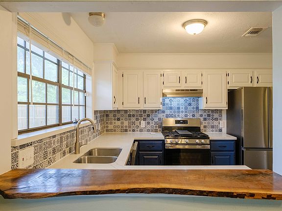 Come tour this refreshed 3 bed 2 bath home nestled in South College Station. You will find an updated kitchen with quartz countertops, dual tone cabinets, backsplash, stainless steel gas range, stainless steel dishwasher, stainless steel refrigerator, undermount sink, and goose neck faucet. Wood-look flooring is found throughout the common areas, kitchen, and baths to make for easier cleaning. The formal dining room has been opened up to the living area to create a more spacious and integrated environment. Both bathroom vanities are furnished with granite countertops, timeless cabinetry, brushed nickle hardware, updated lighting, and upgraded tub fixtures. Enjoy an enclosed back porch that overlooks the backyard.