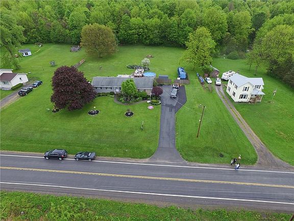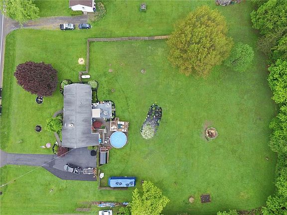 This beautiful home, situated on 1.4 acres, has been lovingly cared for and updated to perfection! Eat-in kitchen with stainless steel appliances and plenty of cabinets, hardwood floors throughout, first floor laundry, updated main bathroom with radiant floor heat and tiled shower. Half bath off master bedroom. Huge yard features above ground pool with deck, large shed with metal roof, privacy fence and tree sculptures. furnace & A/C (10/2015), siding (2018), new full bathroom in basement (2017), fireplace insert in living room and free-standing fireplace in basement, and much much more.