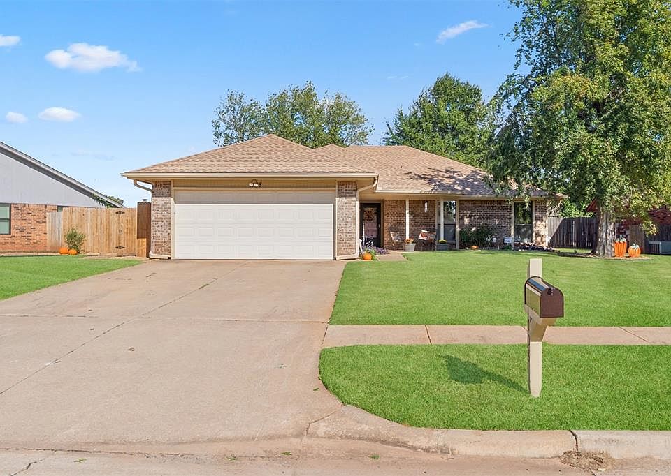 Check out this meticulously cared for family home just minutes from the heart of Edmond! This spacious 3-bedroom, 2-bathroom, brick home offers comfort, style, and convenience with a desirable neighborhood location. Close to major grocery shopping and schools. A new roof was installed just 2 years ago and brand new carpeting and fence installed today! With 1,740 square feet of living space and a spacious 2-car garage, this property has everything you need for modern living. All 3 bedrooms are generously sized and the master suite is a tranquil retreat, complete with an en-suite bathroom and walk-in closet. The open-concept living area creates a seamless flow between the living room, dining area, and kitchen. Perfect for entertaining guests or enjoying quality time with family. The living room features a cozy fireplace with generous bookshelves on both sides perfect for those chilly Oklahoma evenings. You'll enjoy cookouts or simply relaxing on the deck with a private fenced back yard. Don't miss the opportunity to make this charming home your own. Schedule a showing today.