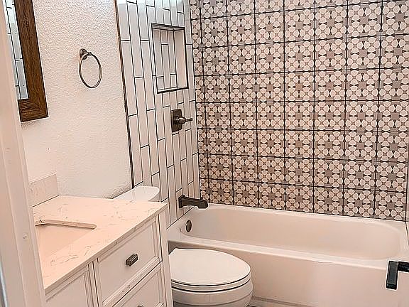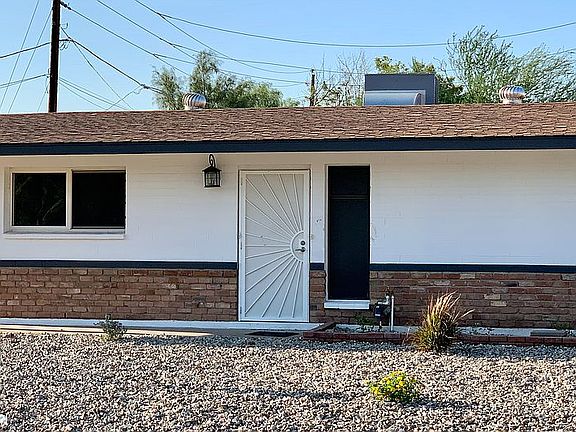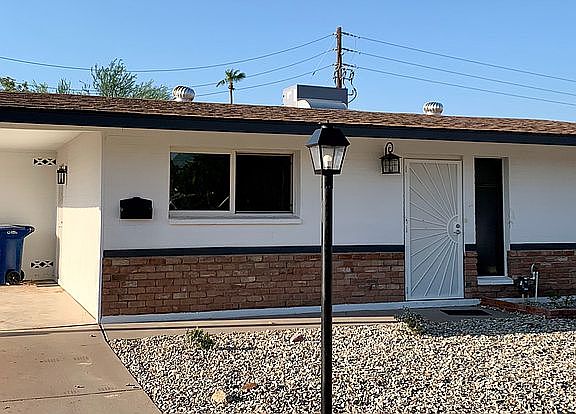 This 2 bed 1 bath remodeled home is move in ready with lots of potential. The home sits on an interior lot away from road noise. Carport with extended driveway. NO HOA! Fresh low maintenance landscaping in front with new exterior paint and brick accents. Beautiful neutral color palette with grey plank tile flooring, matching fans in both bedrooms and living room and high baseboards. Modern finishes all the way into the kitchen which features gorgeous quartz countertops, white shaker cabinets, subway tile and stainless steel appliances. Large slider door opens to the extended covered patio and large grassy area. Ample space if you wanted to put on an addition. RV gate in back that leads to the alley. This won't last so schedule your showing today!