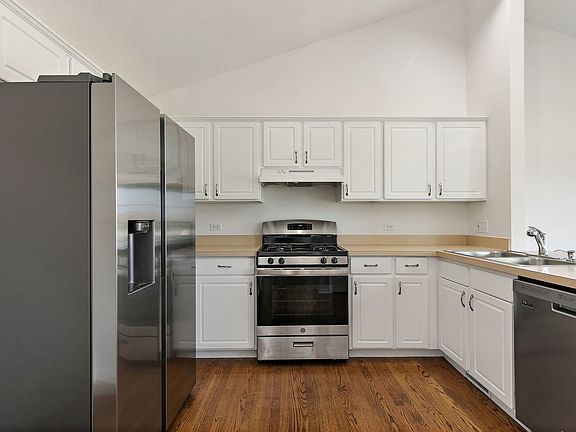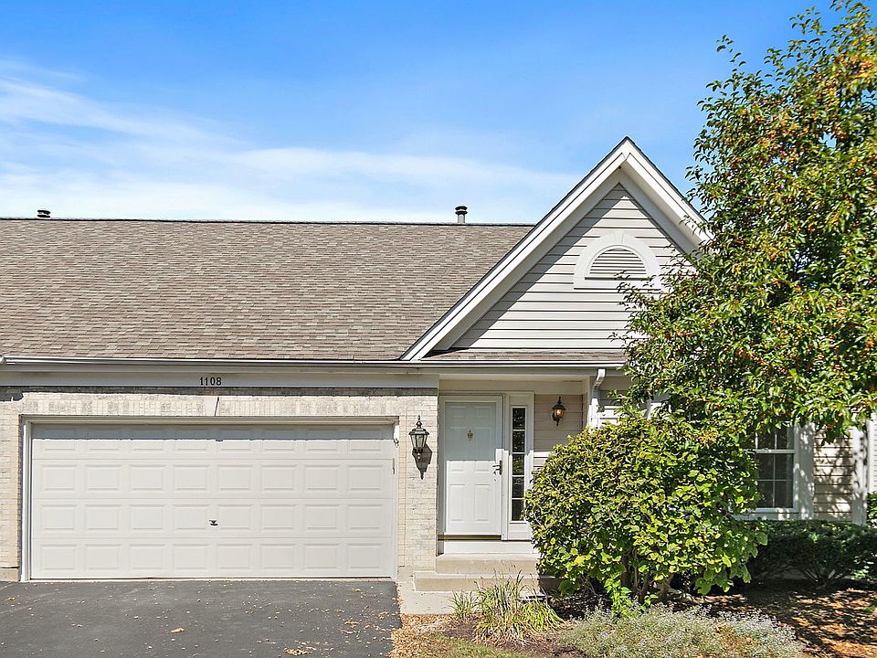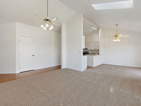 Rare end unit ranch with hardwood flooring, new carpet & paint, white kitchen with newer appliances opens to eating/living room. Finished basement with family room, wet bar, FPL, 3rd bedroom, bath, storage etc. Newer HVAC, roof/skylites, washer/dryer, bar fridge etc... Verseman-built, professionally landscaped, partially fenced yard with patio. Pet-free. Near shopping and Route 14. Good condition. Sold as is. Shows very well.