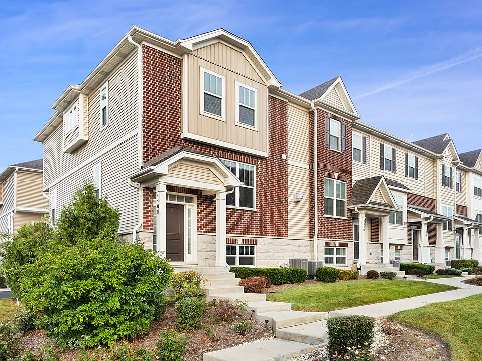 Welcome to 1108 Evergreen Ave! This beautifully updated 3 Bed, 2.5 Bath end-unit townhome was built in year 2019, located in the highly coveted Colfax Crossings subdivision and offers nearly 1,800 sq ft of modern living. Just steps away from downtown Des Plaines and near the Metra, restaurants, and entertainment, this tri-level home makes commuting a breeze and weekend plans exciting. Step inside, you'll find an open and inviting layout with gleaming hardwood floors, a sun-filled living room with a welcoming brick fireplace, and a private balcony perfect for morning coffee or evening wine. The gourmet kitchen is a showstopper with 42" cabinetry, granite countertops, a custom backsplash and an island with breakfast bar seating. Upstairs, 3 spacious bedrooms and 2 full baths await. The primary suite feels like a retreat with its tray ceiling, walk-in closet, and spa-like bath. Two additional bedrooms, a full guest bath, and convenient second-floor laundry complete this floor. Enjoy additional living space with the finished lower level offering flexible options for a home office, gym, or recreation room. This home comes with a transferrable 2-year Home Warranty for extra protection. Enjoy a low-maintenance lifestyle with lawn care and snow removal included, giving you more time to explore all that this vibrant downtown community has to offer.