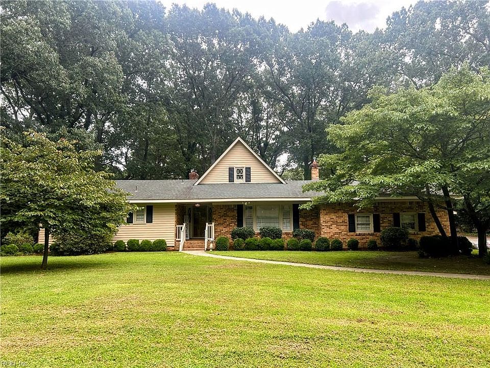 Presenting a true multi-generational home located in the heart of Kempsville. More than just an in-law suite, This home sits on a spacious, beautifully landscaped lot with a variety of mature trees and shrubs. A long driveway leads to rear of property with a carport and a flexible-use shed and at the end of the driveway is a detached 2-story, 2-car garage. The in-law suite has a private entrance with ramp that accesses the deck and sunroom. Interior door connects suite to main home. The suite comprises a lg. primary bedroom with a handicap-accessible full bathroom, a lg. living area, and 2nd bedroom. Main house has 4 bedrooms, 3 full bathrooms, open-concept kitchen with a dining area, and family room, laundry room, and two offices with a side entry and garage access. Kitchen with granite bar and countertops opens to family room with a gas fireplace and custom built-in bookcases. Both sections share a glass-enclosed sunroom. 1 year home warranty included