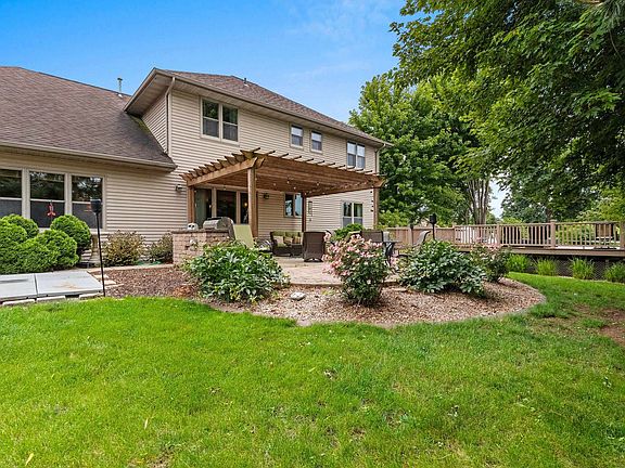 Traditional Design meets practical living! Thoughtfully designed & updated 4+ Bdrm 1 owner 2 Story is ready for you to enjoy the ease & beauty of wood floors & a layout suitable for all your needs. Whether working from home or entertaining the living areas are sure to suit all your wants & needs. Large bedrooms & loads of closet space. 2 Fireplaces, 2 Family Rooms, daylight windows brighten the flexible spaces in the professionally finished lower level. Perfectly placed on a cul-de-sac lot with western exposure are the stamped patio & pergola covered grilling station. A court suitable for pickleball, basketball or your favorite sport. An above ground pool with composite deck. Heated 4 stall garage w/basement access. Come experience it all!
