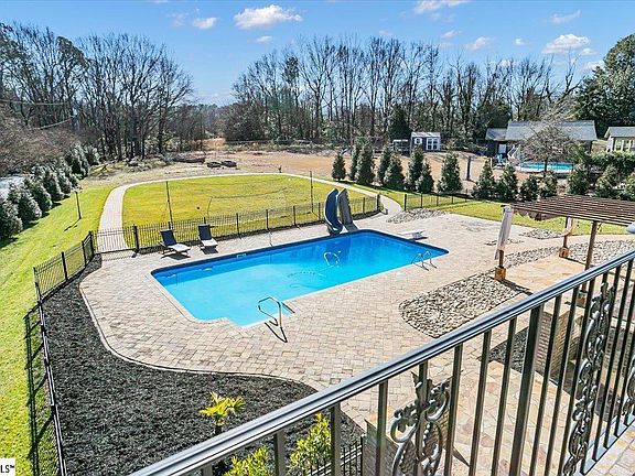 THE CASTLE ON HUDSON – A Magnificent Custom Home on 1.28 Acres  For the first time ever, this one-of-a-kind premier home is being shared  with the public. The Castle on Hudson sits on over an acre of land with no HOA and offers a truly luxurious living experience. The stunning saltwater pool with paver decking creates the perfect oasis, while beyond the pool lies your own private soccer field and a picturesque paver walking trail—ideal for outdoor enthusiasts. After a day of enjoying the pool, retreat to the pool house bathroom with a shower for added convenience.  As you arrive, you’ll immediately notice the meticulous attention to detail in the brick and natural stone exterior, setting the tone for what’s inside. Upon entering the grand foyer, you are greeted by the gleaming Turkish Travertine tile flooring, creating a lasting impression. The formal dining room provides ample space for large gatherings, with custom wainscoting and detailed moldings, highlighted by a stunning crystal chandelier—perfect for entertaining family and friends.  The huge gourmet kitchen is a chef’s dream, featuring Wolff appliances, including a six-burner natural gas cooktop and Wolff double wall ovens. A unique curved wall along the rear of the kitchen leads to a bar-height counter that overlooks the pool and grounds—provides mesmerizing views. The kitchen also includes a walk-in pantry with custom shelving and quartz countertops that add to its grandeur.  The great room is designed to impress, with large windows framing stunning views of the backyard. Remote-controlled window coverings add convenience, while the gas log fireplace with a two-story stone wall surround creates a cozy, yet dramatic, focal point.  This home features two primary suites, one on the main level and one on the second level. The second-level primary bedroom provides an enormous walk-in closet with a custom cabinet center island and a built-in bench along the windows, creating a tranquil retreat.  Additional highlights include a central vacuum system, natural gas tankless water heater, and custom built-in corner cabinets in the upstairs loft. The home also features crystal light fixtures, custom armoire wardrobes in the spare bedrooms, and remote-controlled curtains in the great room and living room.  The outdoor space is truly exceptional, with a personal soccer practice field, a saltwater inground pool, and a paver walking trail through the landscaped grounds. Enjoy the convenience of a poolside bath house with a shower. The three-car oversized attached garage and fourth garage at the rear of the house provides ample space for all your storage needs, whether it’s for pool equipment, lawn care, or other items.  This incredible home also boasts whole-house spray foam insulation, providing superior energy efficiency. And with a security camera system and irrigation system, every detail has been considered for your peace of mind and convenience.  With 1.28 acres of land and no HOA, this home offers the perfect balance of privacy and luxury. Plus, the property features a variety of fruit trees, including peach, apple, pear, and fig—adding a touch of nature to your retreat.  The Castle on Hudson is a true masterpiece, providing the highest level of luxury and a truly unique living experience.