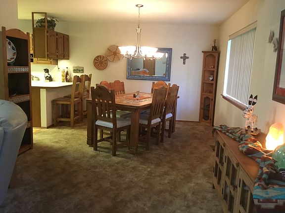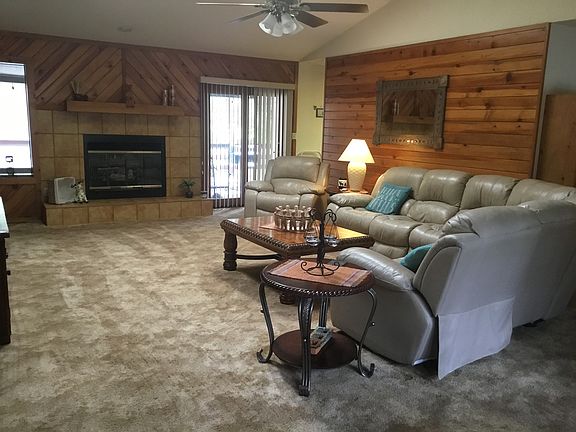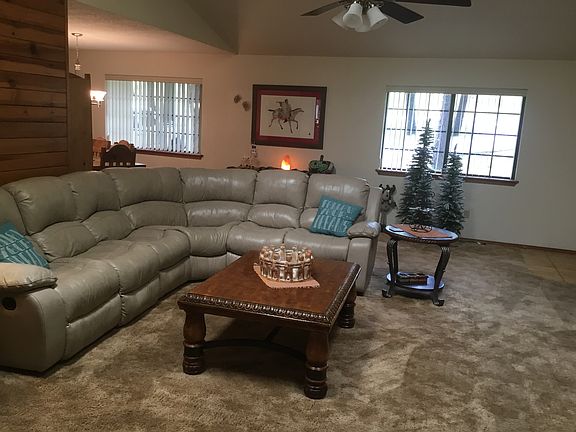 Beautiful mountain home with 2 master bedrooms. Total of 3 bedrooms & 3 bathrooms. One master has access to back deck. Includes washer and dryer. Living room is bright with sunlight from 2 skylights. Living room also boasts wood accents and gas fireplace. Kitchen has newer stainless steel appliances, wood floor and breakfast bar and nook. Carpet, tile and wood floors. Refrigerated air. Two car garage with one bay large enough for RV. Large private deck in back with gas grill plus fenced backyard. Level lot. Plenty of parking with circle drive. Great for either year round living or vacationing. Furniture negotiable. Move in ready.