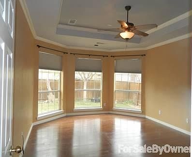 This gracious home is a standout: it is a family home with style! The five bedrooms and four baths are part of an open and thoughtful floor plan. The stone and brick faade is enhanced by pretty landscaping, and the entry hall has view of the formal living and dining room. Tall windows in the family room overlook the patio and yard. Two stairwells leading up to the 2nd floor are connected by a walking bridge. Master suite is on the first floor, with a great view of the yard. A second bedroom with full bath on the first floor is great for guests or perfect as a home office. Three bedrooms and two baths (one JackAdditional property info: http://www.forsalebyowner.com/listing/5-bed-Single-Family-home-for-sale-by-owner-1108-lamplight-way-75013/23942811?provider_id=28079