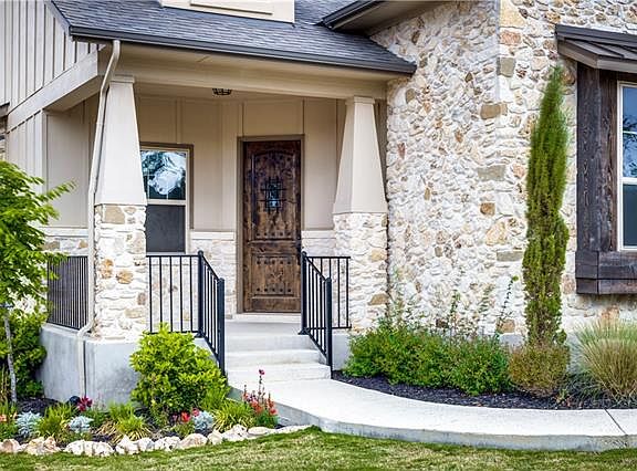 Tour this new build by Sitterle Homes that boasts multiple high-end finishes. Entertain or relax on the private backyard w/ a stone wall and a view for miles overlooking hills & a valley of the South San Gabriel River. This home boasts an open floor plan, spacious kitchen w/ 36" burner cooktop & an oversized eat-in island. Plenty of storage options as well as a flex room for a home office, craft room, or more! Unwind in the Master Suite with river rock walk-in shower & soaking tub w/ California Closets!
