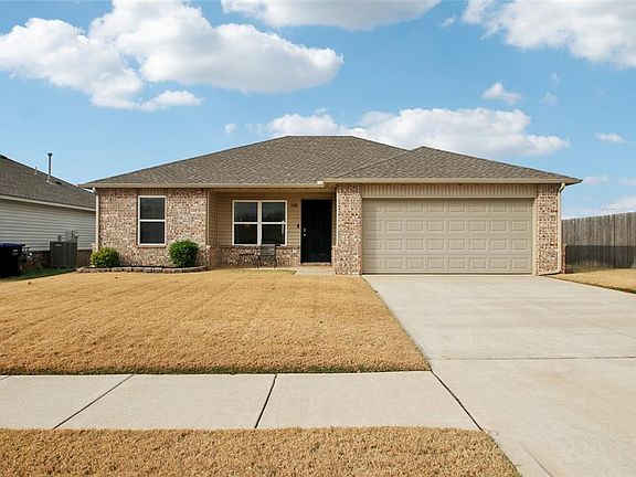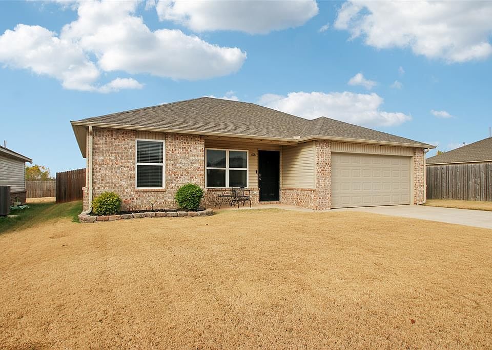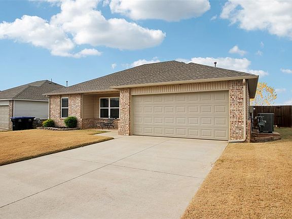 Charming home with wonderful curb appeal—especially in the evenings with its infinity lighted eaves! Inside, the open-concept layout offers a seamless flow from the living room into the kitchen and dining area, with a convenient breakfast bar dividing the spaces. The kitchen features granite countertops, a pantry, and a dedicated dining space with access to the backyard. The primary bedroom includes a single vanity with a seated makeup area, a tub/shower surround, and a walk-in closet. Two secondary bedrooms are located along a separate hallway with easy access to the second full bathroom. The oversized backyard is a standout, offering a full wood fence, an extended concrete open-air patio, and an additional 10 feet of property beyond the back fence—maintained by the homeowner and perfect for extra space or privacy. Additional highlights include full guttering and the option to keep the Culligan water softener system with transfer of the monthly service. Refrigerator, washer, and dryer are negotiable.