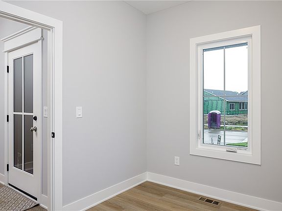 This stately 2-story home in Heritage at Grimes, features a main floor office and 4 spacious bedrooms on the upper level. The KRM Custom Homes Cobalt plan offers 2254 sq. ft. of living space with designer details, including a gourmet kitchen with a massive island, pantry, gas range, and custom range hood. The primary bath features a luxurious tile shower, and quartz counters are found throughout the kitchen and baths. The exterior boasts a stunning appearance with Hardie plank siding. An irrigation system is included for the entire lot, and a covered deck is perfect for relaxation. The walkout basement leads to a flat lot, ideal for a future pool. A no closing cost option is available with the preferred lender.